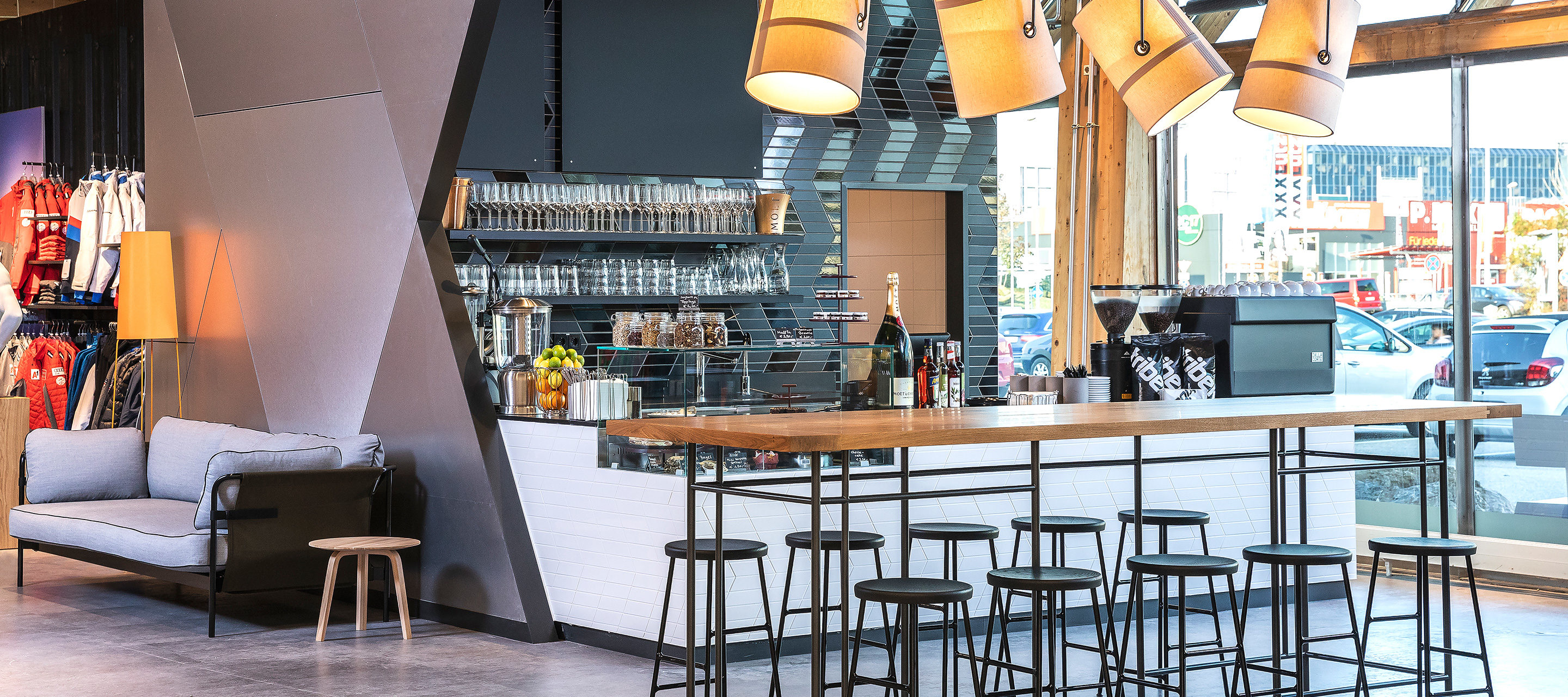 Gigasport introduces this service wherever it is indispensable. Not least in the new café where the Gigasport design is featured throughout 70 m² space with the aim of encouraging customers to spend longer in the store. The plan took off: “It really warms my heart to see how much at home our customers feel here,” says Branch Manager Andreas Enzelsberger. Specially appointed barista staff treat the guests to delicious coffees and snacks. The breakfast offer has been particularly well received. The café is well visited even by non-shoppers because there are few other places to stop off for a refreshment break in the immediate surroundings. This combination of retail and gastronomy has enabled Gigasport to broaden its customer portfolio.