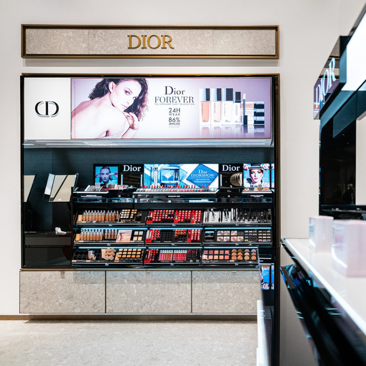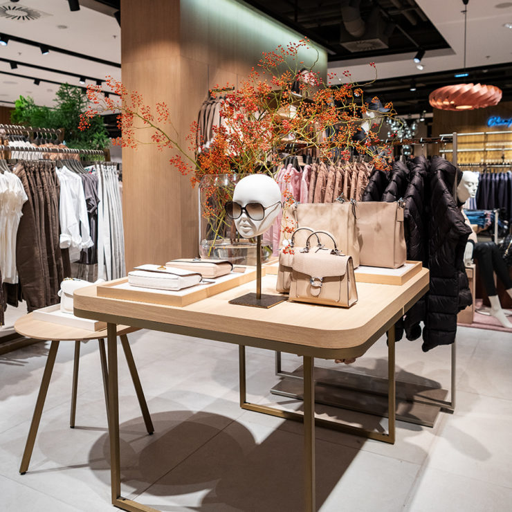The new branch should be a meeting point in Innsbruck – for everyone who loves fashion and beauty. For this, the fashion house spared no expense or effort. For the benefit of the impressive merchandising, the escalator was moved by half a meter and the interior was built with high-quality materials. Solid oak wood is used for entire wall cladding and central room furniture. Real floor tiles adorn the furniture fronts in the beauty area. Facade glass, which produces different reflections depending on its rotation, was built into the furniture in the form of cubes and surfaces. The brass surfaces round off the harmonious overall picture and leave no doubt about the statement by Kastner & Öhler: We are Austria’s most beautiful fashion house.