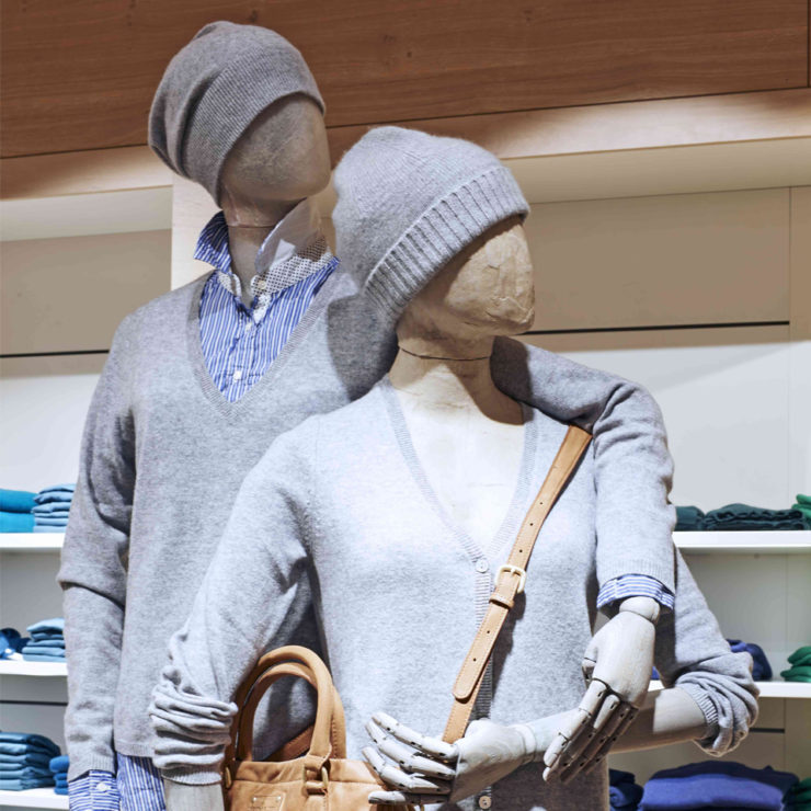 High quality materials, harmonious colours, latest trends – not only with regards to the fashion assortment. These attributes also describe the new interior design. White oiled oak, high-gloss surfaces, fine copper ropes, graphic and sculptural forms define the appearance. No chance, at Leffers everyone will become a fashion victim.