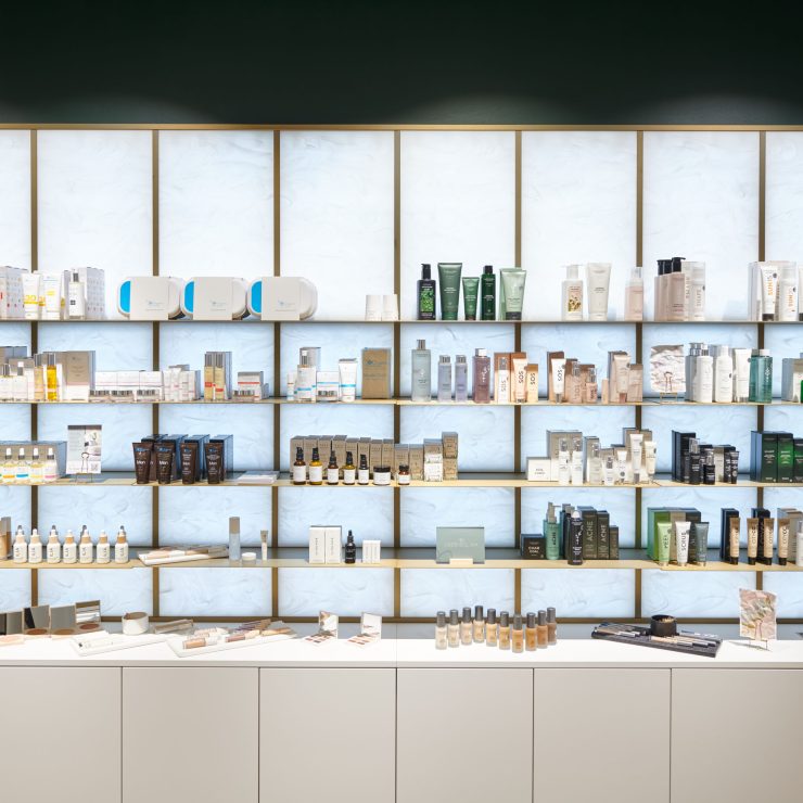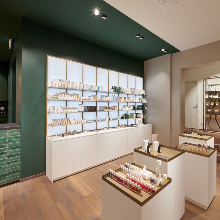 In 360 ° Kabinen, die Kundinnen und Kunden wie in einem Kokon behutsam in den Arm zu nehmen scheinen. Einkaufen mit Gefühl.